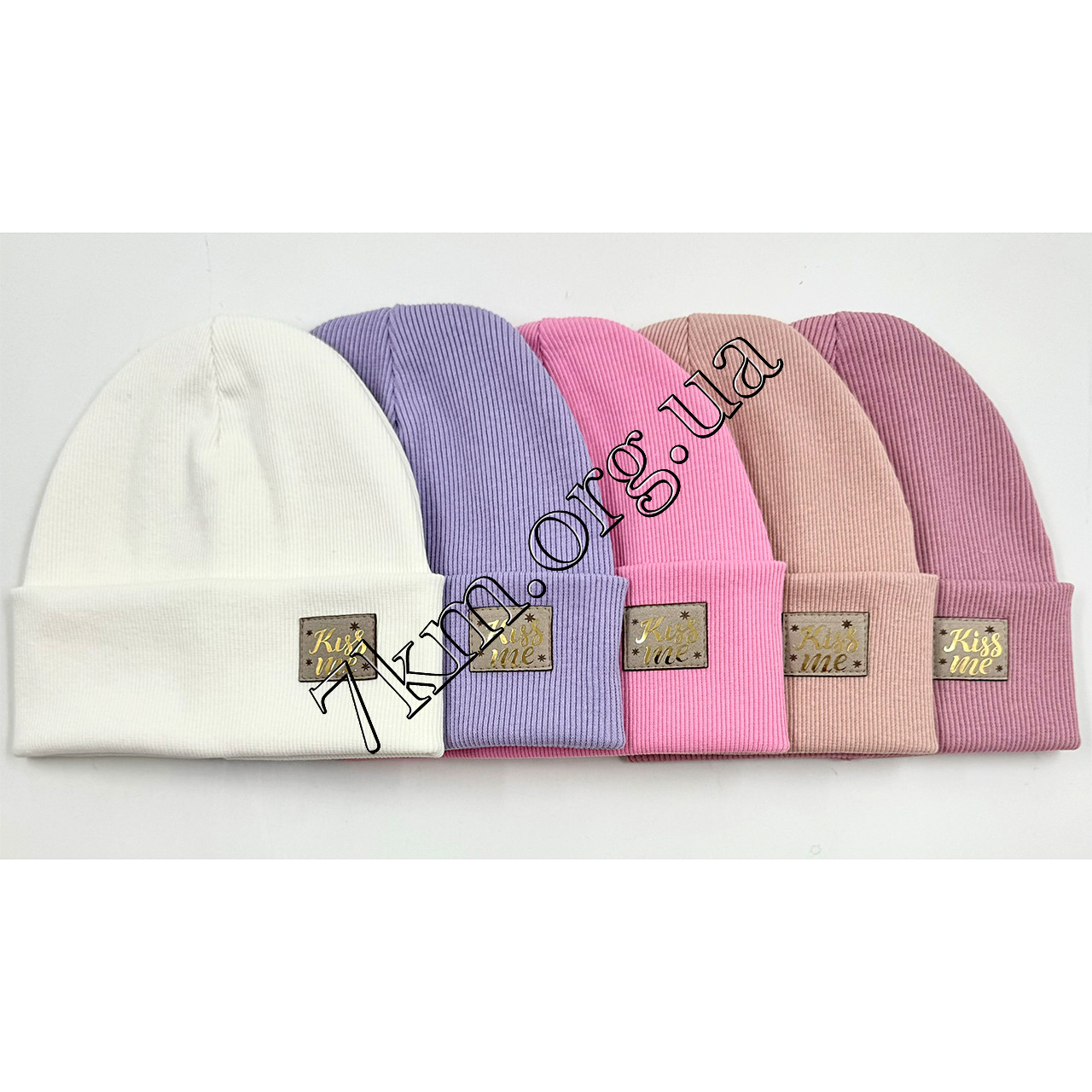 Шапка дитяча Оптом подвійний трикотаж у рубчик для дівчаток 44-48 р.р. "KissMe" ABC 9096